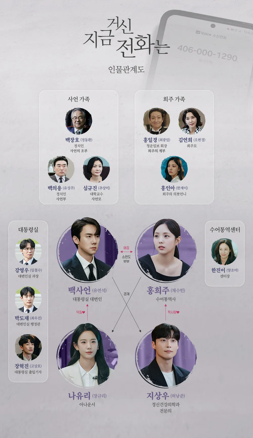 2024년 11월 22일 첫 방송을 시작으로 긴장감 넘치는 전개로 주목받는 '지금 거신 전화는'은 주인공들 외에도 강렬한 개성을 지닌 주변 인물들이 이야기를 풍성하게 만듭니다.